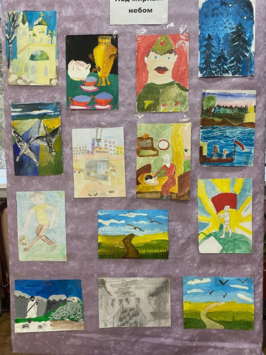 В МОУ «Большеборковская СОШ» была организована выставка рисунков обучающихся начальной школы - «Под мирным небом», участники Движения Первых оформили тематический стенд, посмотрели видеопрезентацию.